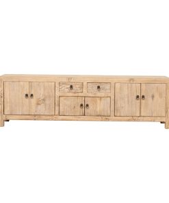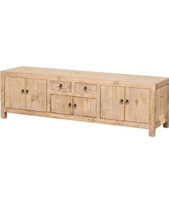 Mesa de Centro Redonda en Pino Reciclado y Estructura Metálica
