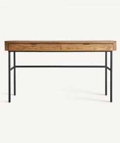 Mesa Auxiliar de Roble con Bandeja Extraíble y Base Metálica Negra