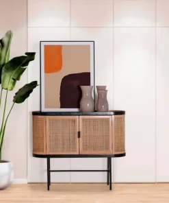 Esta consola ovalada combina a la perfección materiales nobles y diseño contemporáneo. La estructura está realizada en roble claro, aportando calidez y textura natural, mientras que la tapa de piedra ofrece una superficie resistente, elegante y fácil de mantener. Su diseño de líneas puras se realza con patas metálicas negras en forma de arco, creando una silueta ligera pero con carácter. Incorpora un cajón central que se integra con discreción, ideal para almacenar pequeños objetos. Perfecta para entradas, salones o dormitorios, esta consola destaca por su estilo equilibrado entre lo moderno y lo atemporal.
